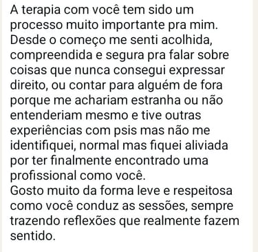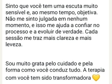 Se você sente que esse espaço pode fazer sentido para você, fico à disposição para esclarecer dúvidas e te orientar sobre o processo terapêutico