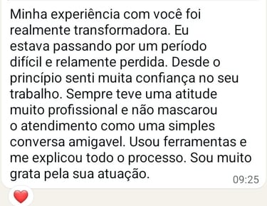 Meu trabalho é voltado para mulheres que se sentem cansadas de se adaptar, confusas nos relacionamentos ou presas em ciclos de autocobrança, ansiedade e insegurança emocional.
