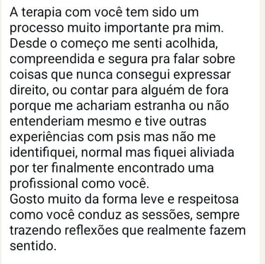 A terapia pode ser um espaço para você entender melhor o que está vivendo, sem se culpar por sentir o que sente ou precisar do que precisa.